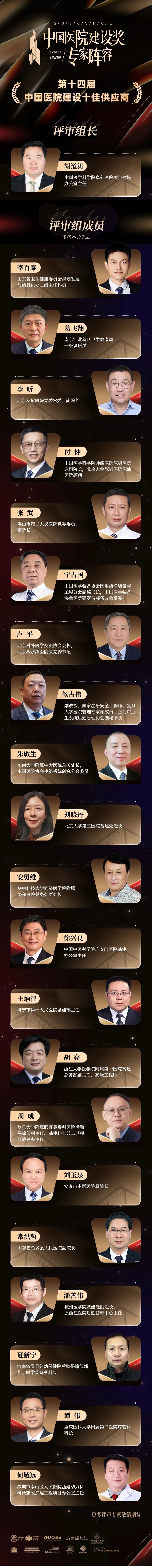 接下来,我们正式揭晓第十四届中国医院建设十佳供应商评审专家阵容。
